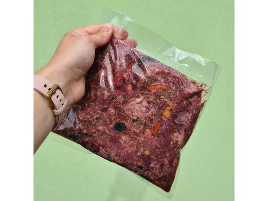 Maso je zmražené tak, aby všechny živiny byly zachovány nejlepším možným způsobem. Neobsahuje žádné konzervační látky a je vhodné pro všechna plemena psů.